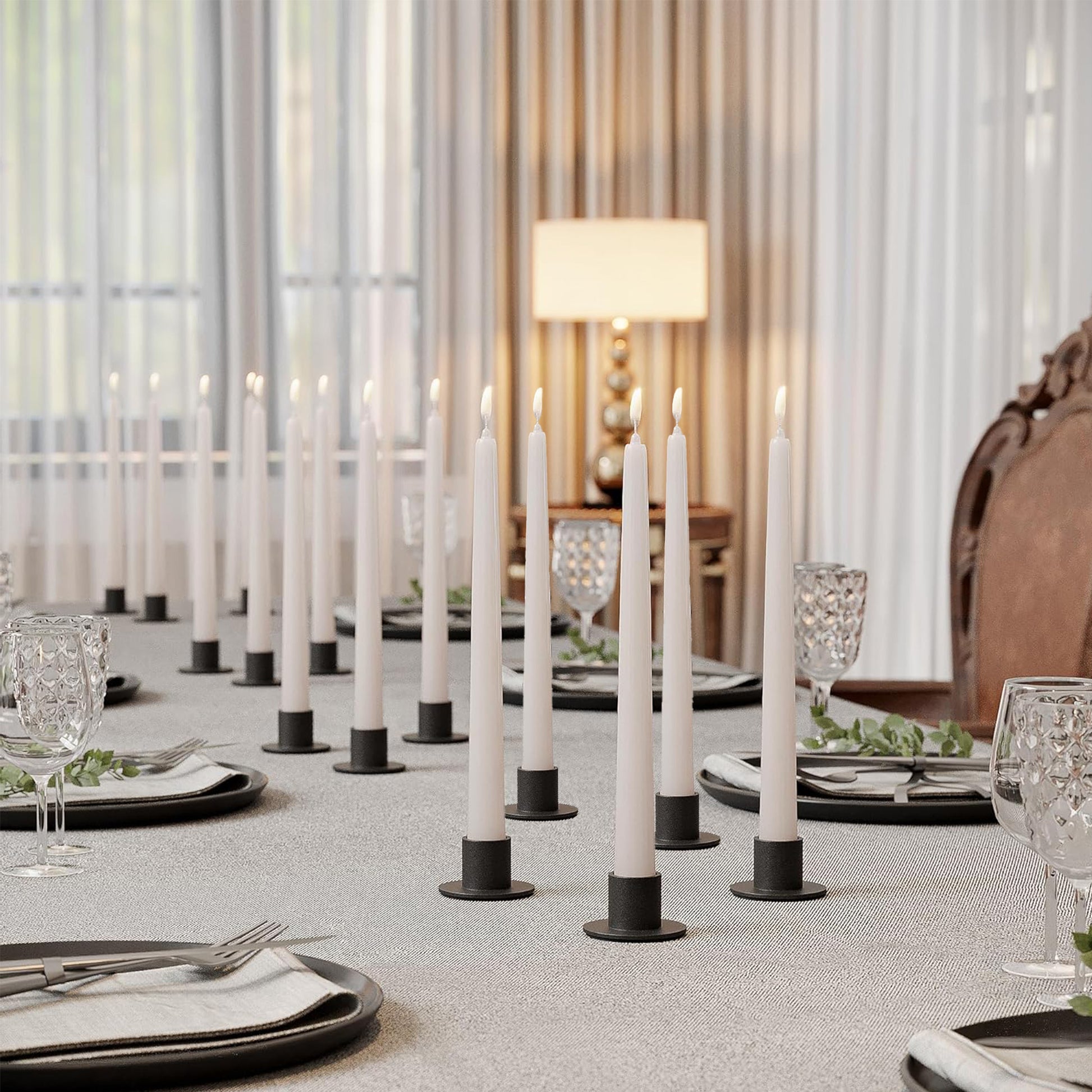 2. **Unique Home Decor**: - These metal taper candle holders boast a sleek matte black appearance that serves as stunning centerpieces in any setting. Their timeless design complements various home decor styles, adding a touch of elegance to your space.