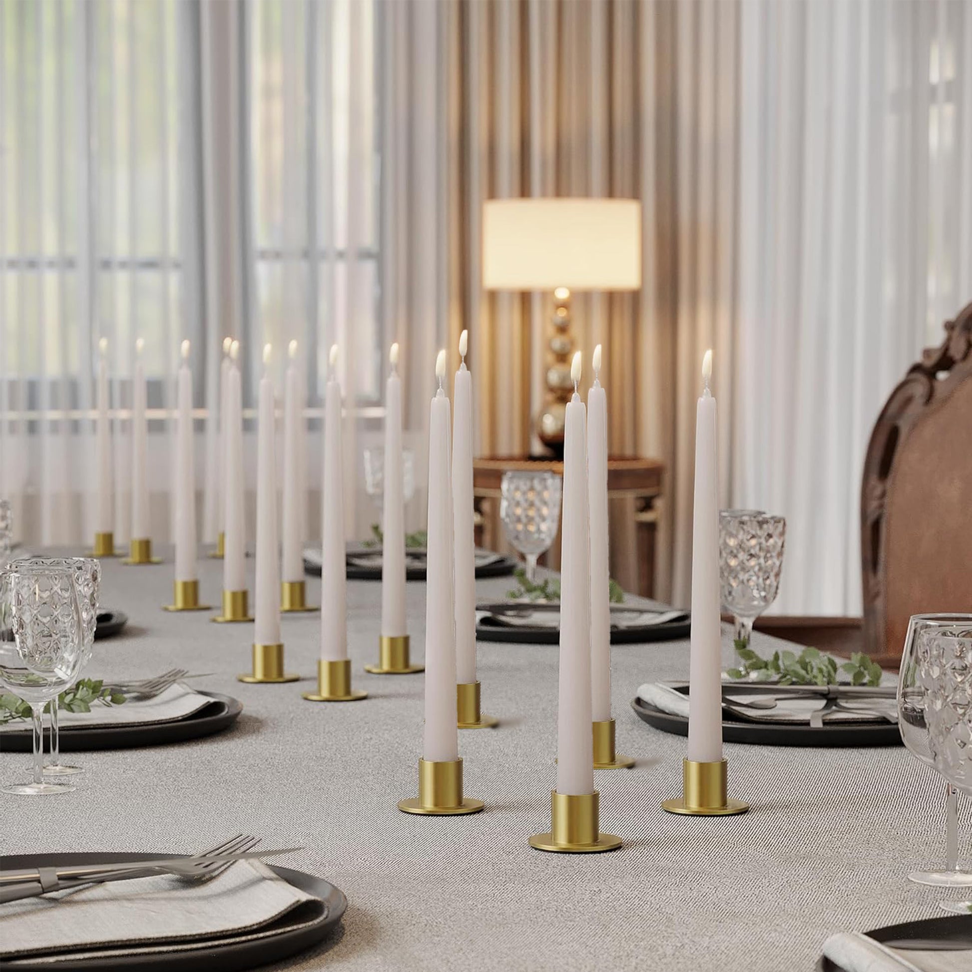 2. **Unique Home Decor**: - These metal taper candle holders boast a sleek bright gold appearance that serves as stunning centerpieces in any setting. Their timeless design complements various home decor styles, adding a touch of elegance to your space.