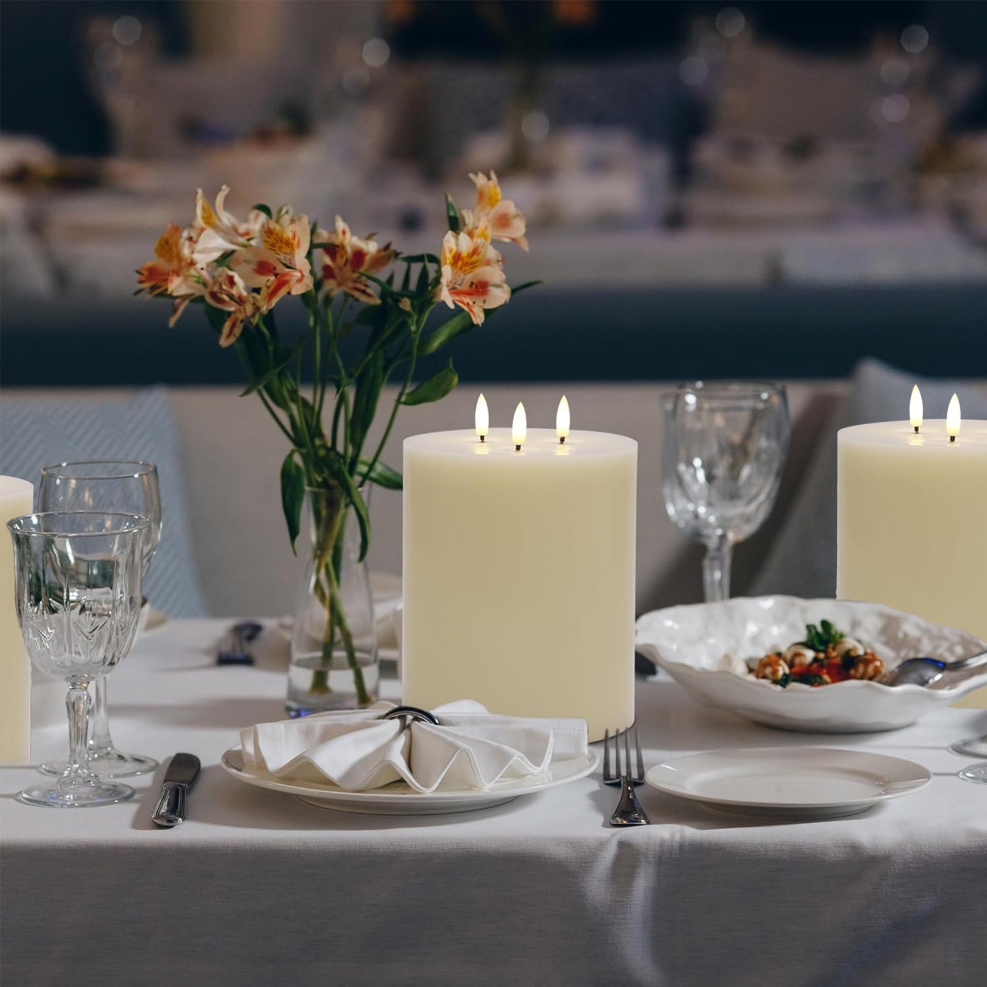 4. ✨【Versatile Decor Solution】Measuring 6"x6", our extra-large flameless candles are perfect for various occasions, including weddings, parties, and holidays. Use them as stunning centerpieces or accent pieces for a fireplace, dining table, or mantle, enhancing your decor with their beautiful ivory finish.