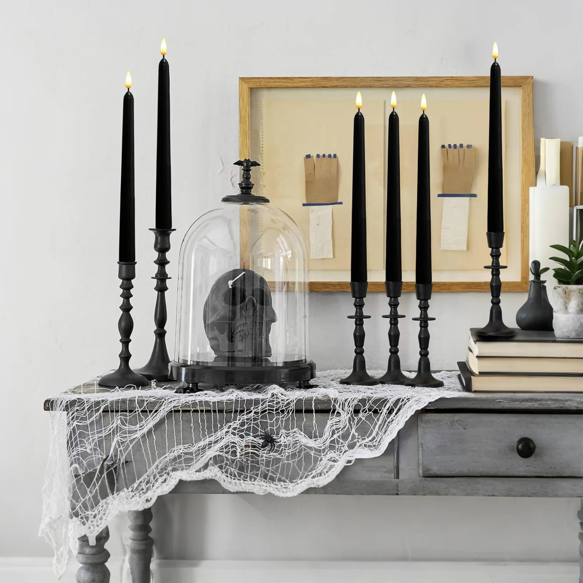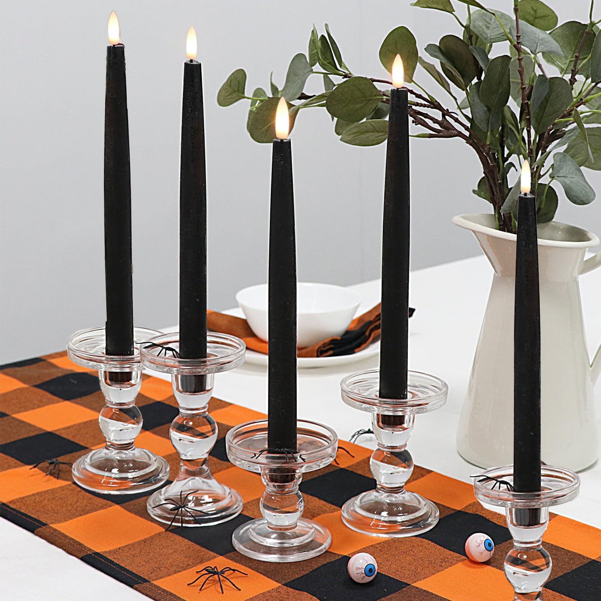 HIDAWN 6 Pcs Black Flameless Taper Candles with Remote, Yellow Flickering Light Realistic Plastic 11 Inch Long Battery Operated Window Candlestick for Wedding Dinner Halloween Christmas Decor
