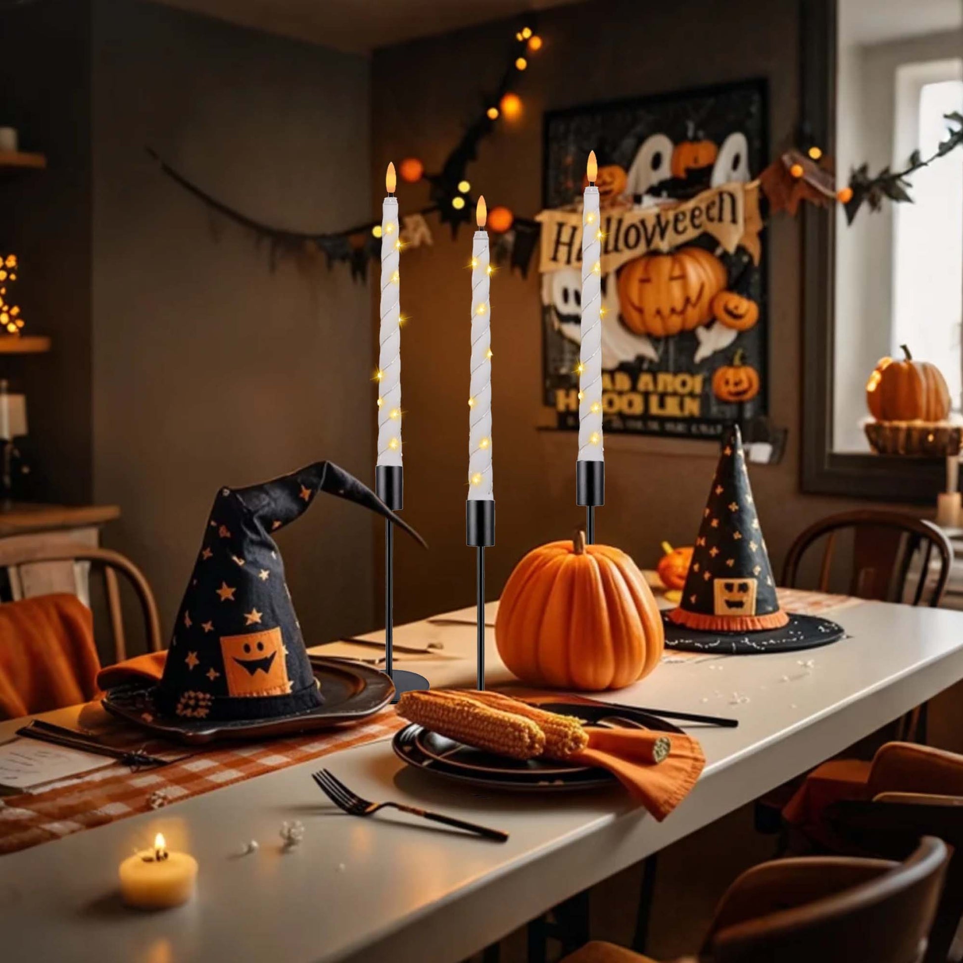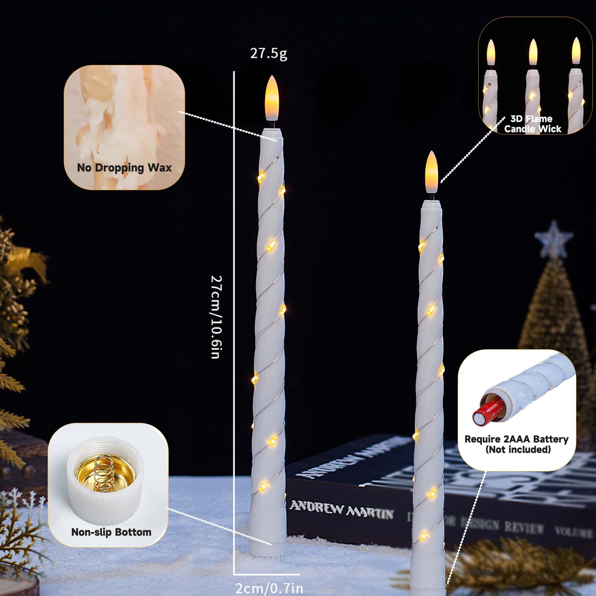 - ✨【BRIGHT & REALISTIC】Our 3D Wick battery operated twisted taper candles emulate the look of real candles,the additional small string of lights emits bright light.The soft flicker of candles simulates the most realistic traditional combustion effect,brings the most realistic experience to user.