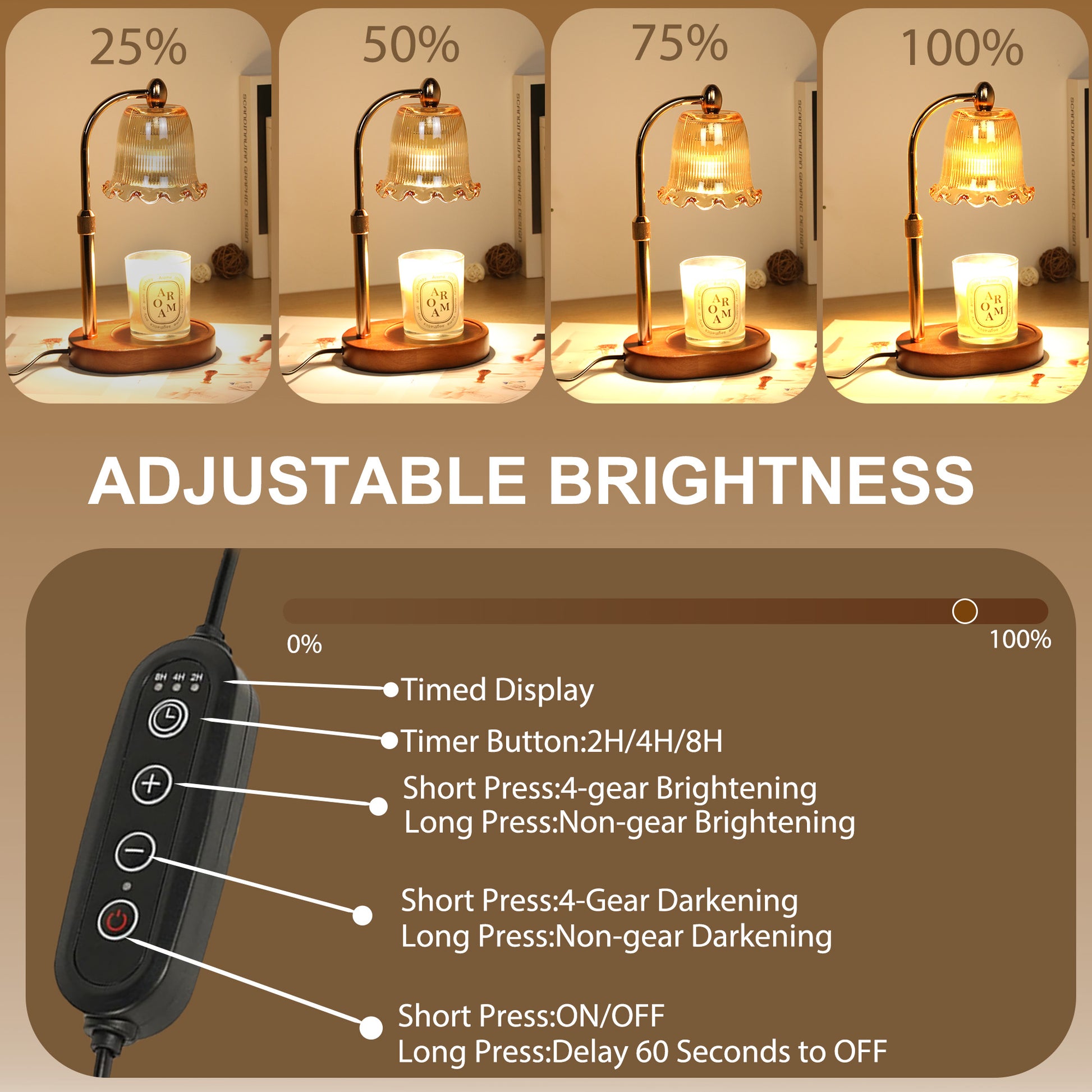 - 3.🔆【Adjustable Brightness】 Equipped with a dimmer that offers four brightness levels, you can easily control the heat to speed up wax melting or extend the fragrance duration—doubling the enjoyment compared to regular burning candles.