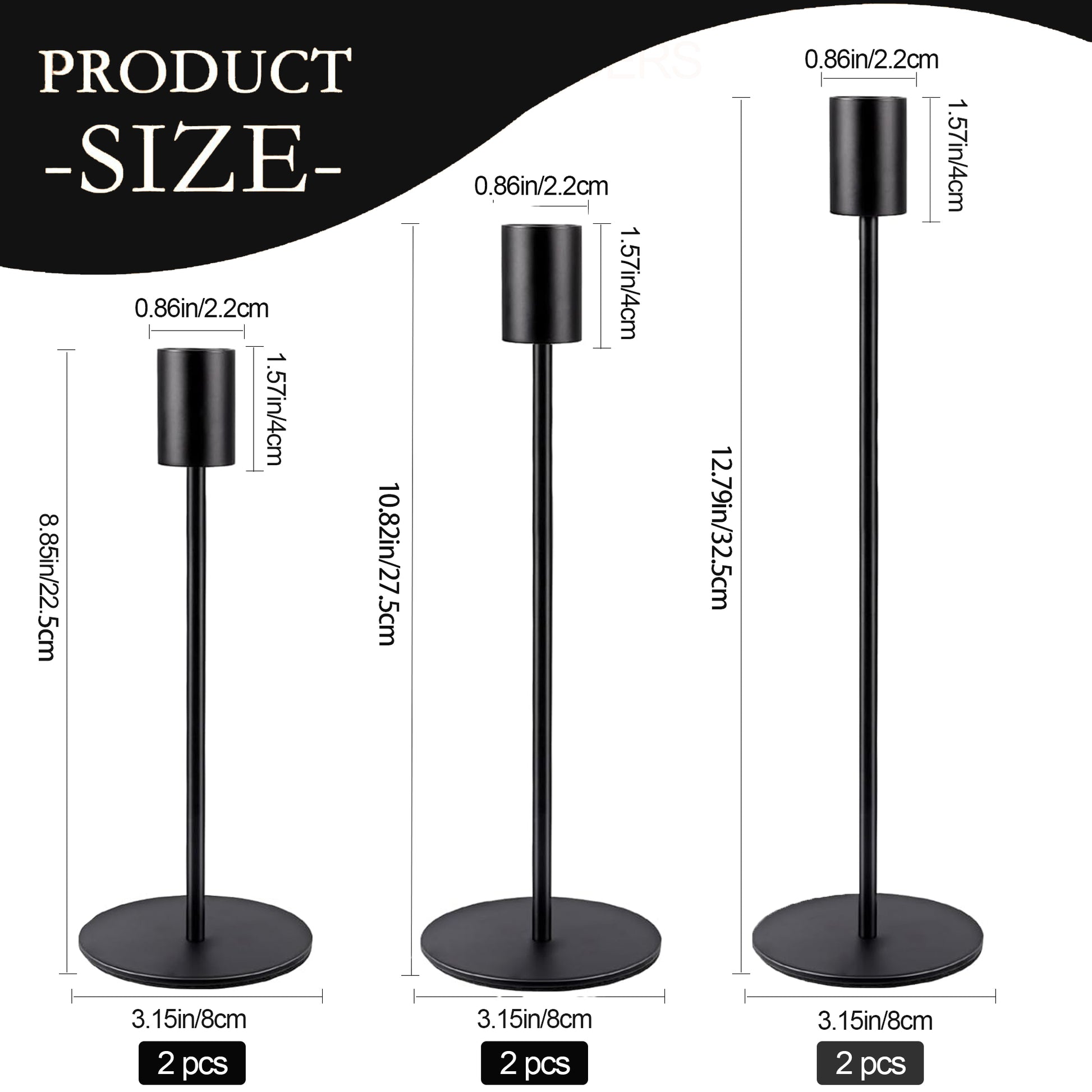 - 【Sturdy and Stable Candlestick Holders】The candle holders cup is designed as a cylinder, heavy round base, the black candlestick holders firm and stable. Made of high-quality metal materials, anti rust and anti-corrosion, shiny luster.