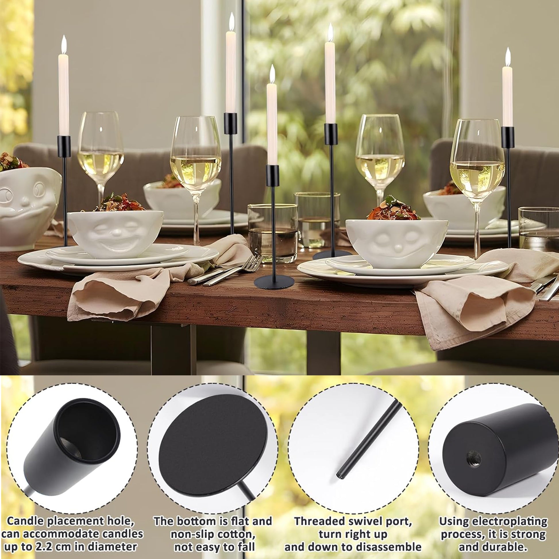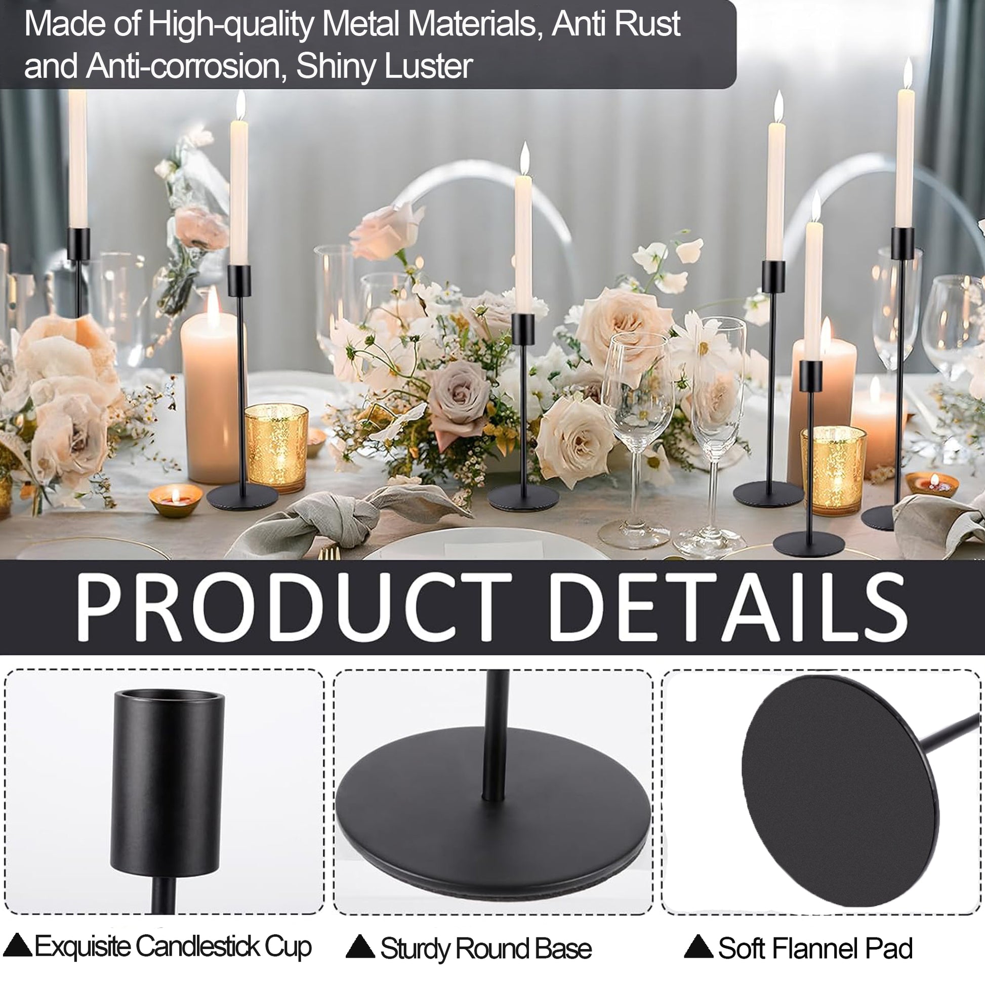 - 【Exquisite Details 】A soft black flannel pad is pasted under the metal candlestick base, which isolates the furniture where the candlestick is placed from the metal base, reducing friction and damage.