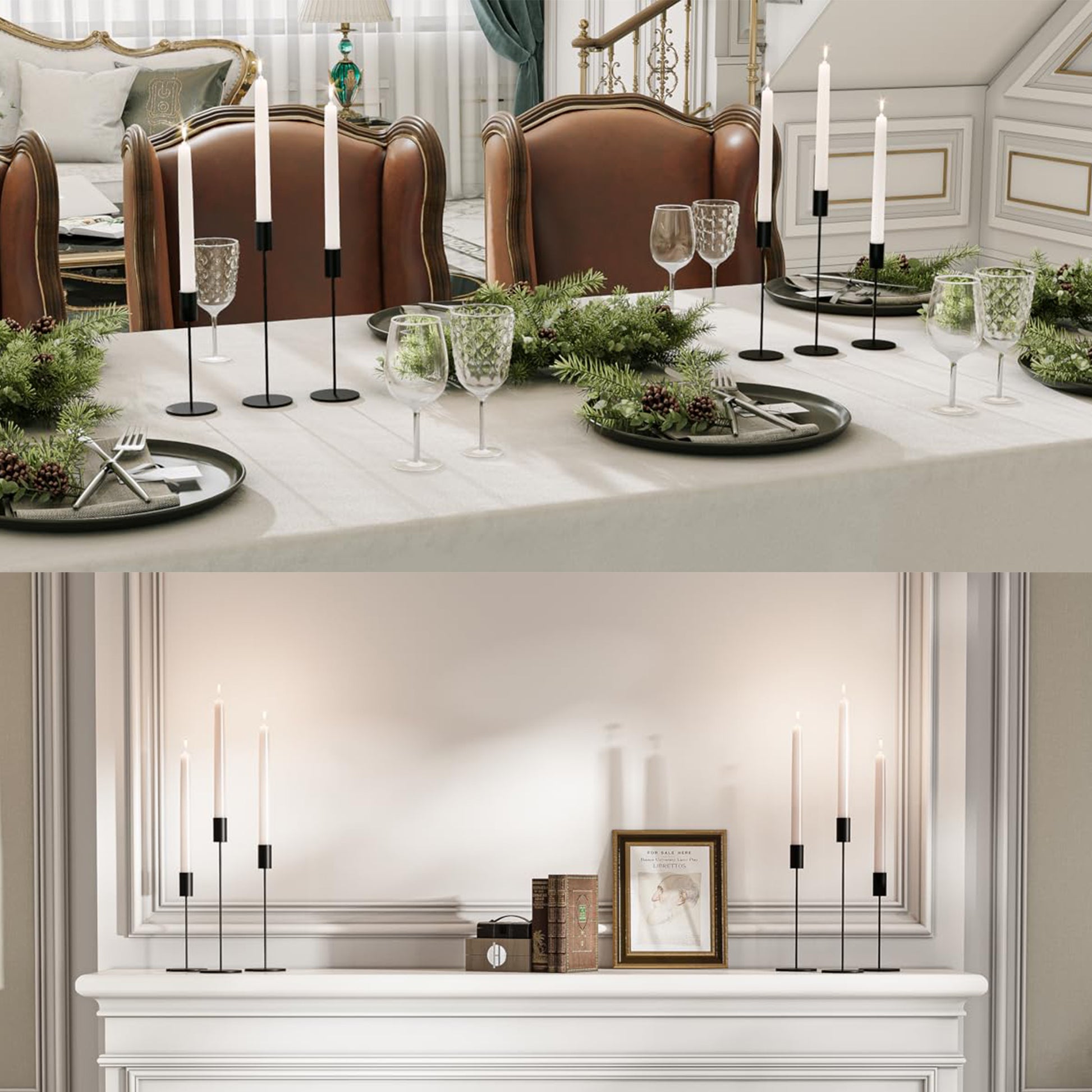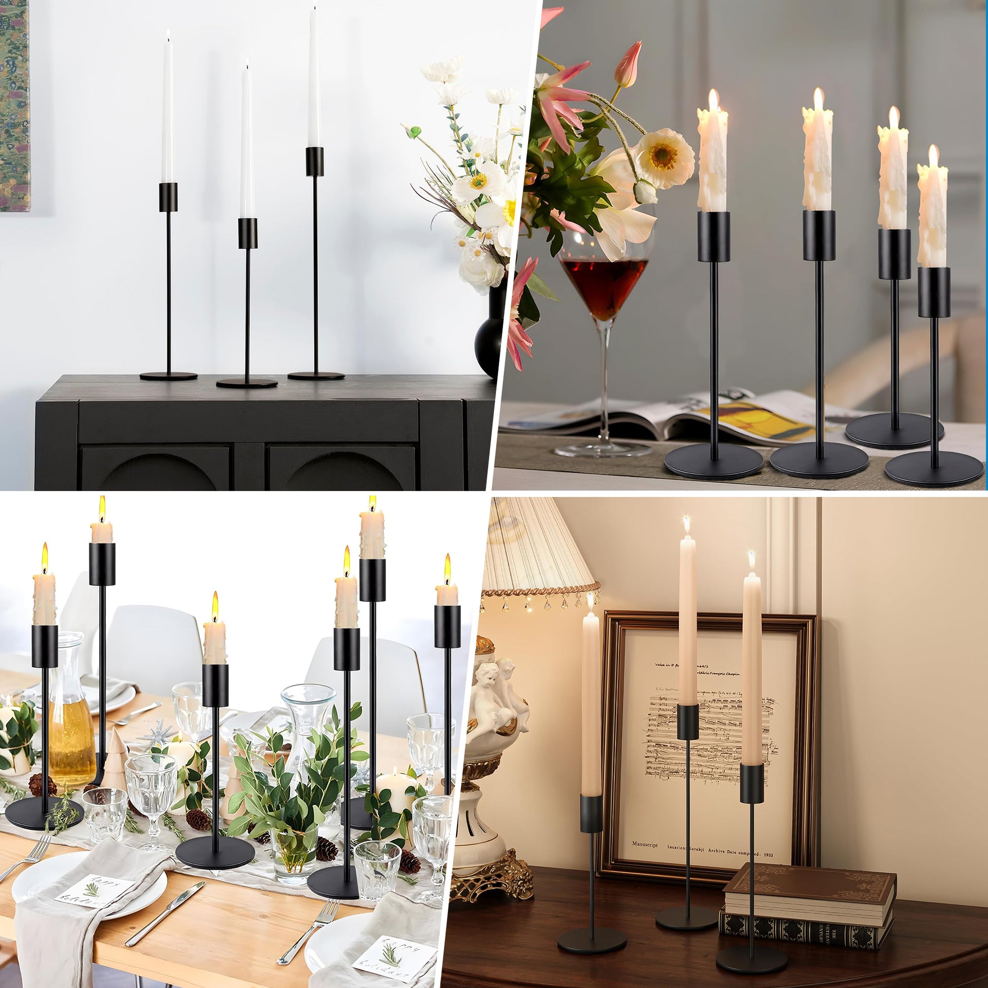 - 【Elegant Black Metal Candle Holder】 This candlestick holders for tall taper candles adds a touch of sophistication with its black finish and sleek silhouette, complements any home decor, adding a stylish and rustic touch.