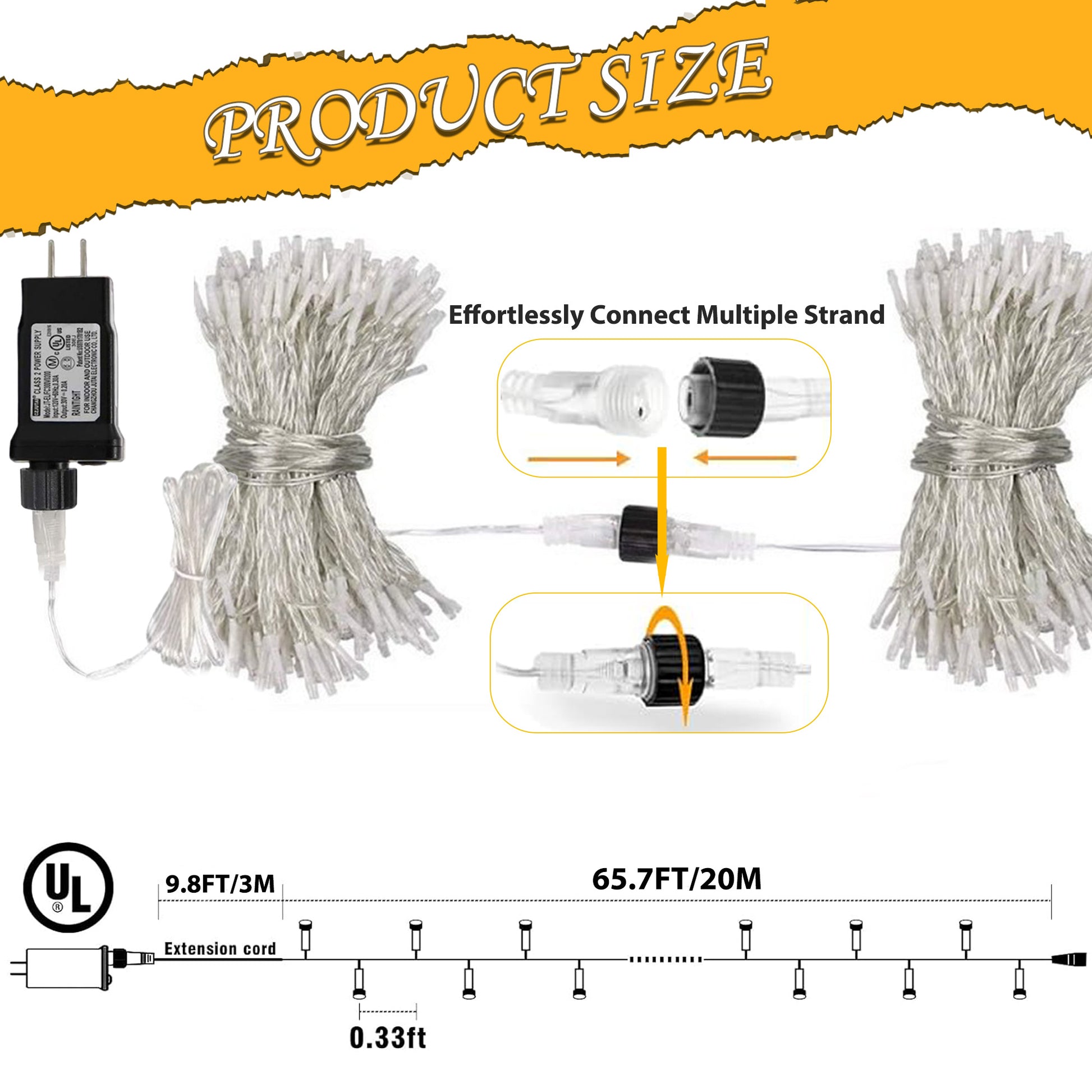 - 🔗Connectable Design:Experience the convenience of our 75.5FT (65.7FT/20M String Light +9.8FT/3M Extension Cord)Connectable Warm White Christmas Lights featuring 200 LED bulbs. These string lights are perfect for decorating both indoor and outdoor spaces, allowing you to extend your coverage effortlessly with their end-to-end connection, making them ideal for larger areas.