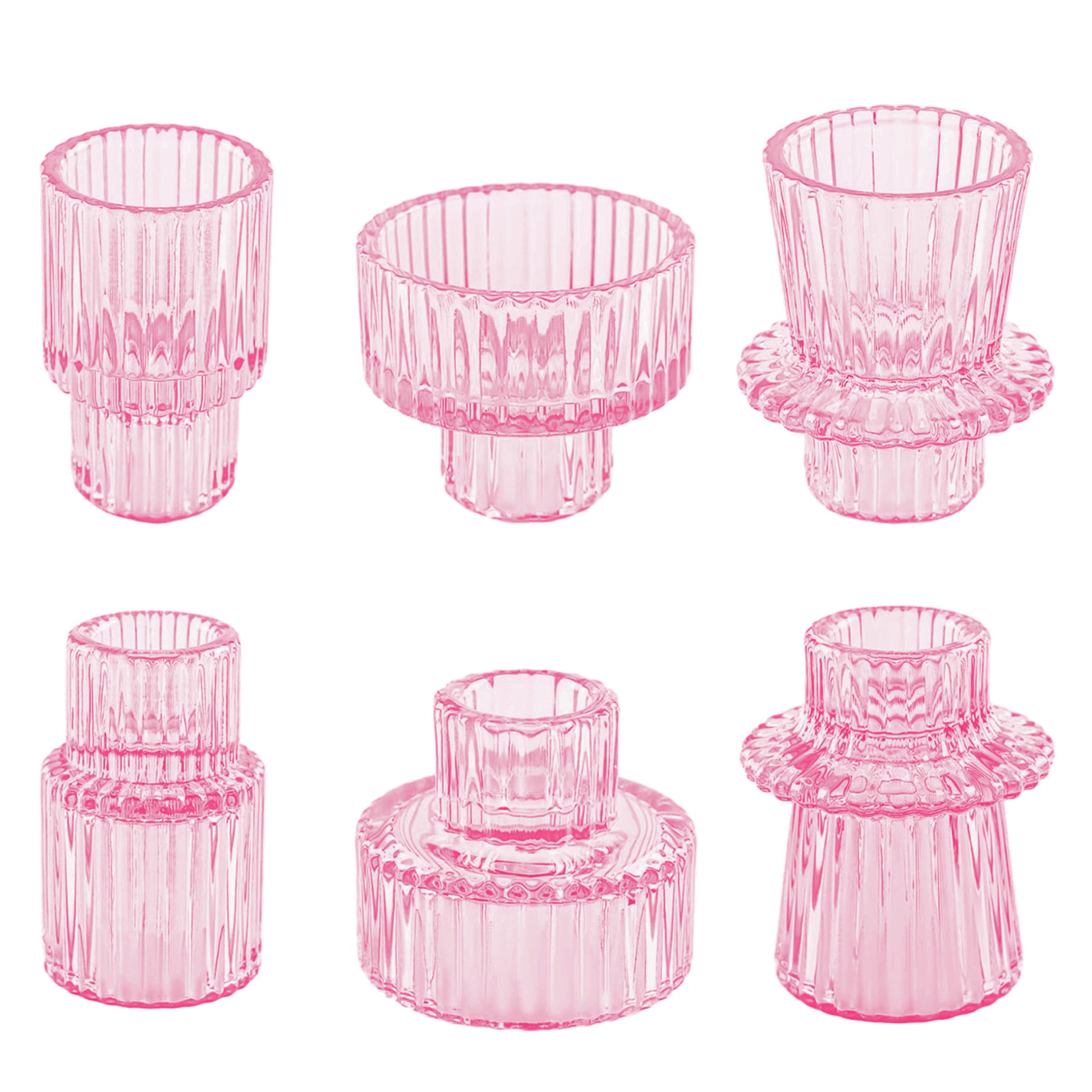 HIDAWN 6 Pcs Pink Glass Candlestick Holders Tealight Candle Holders, Votive Candle Stick Candle Holder
