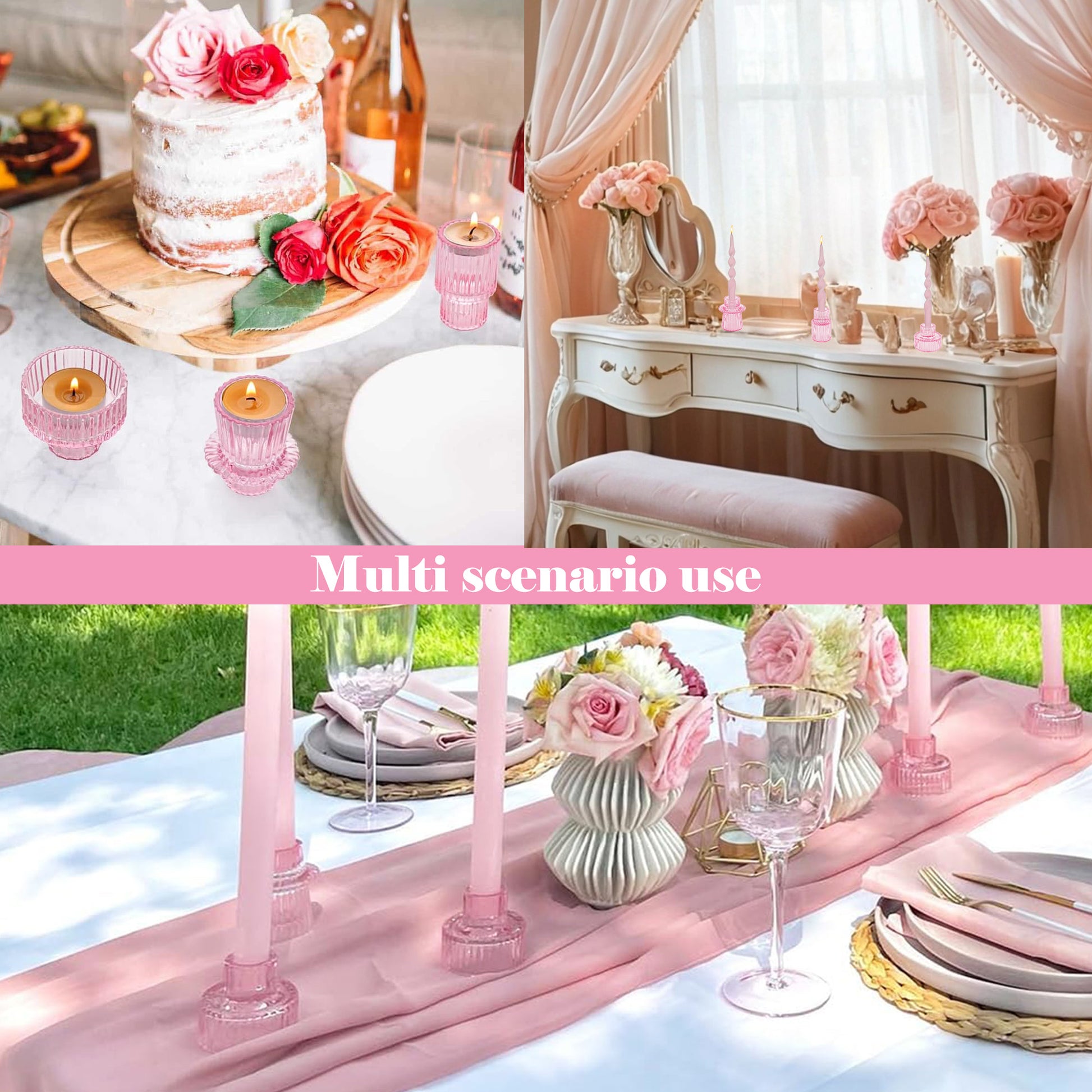 📦Complete Package-Includes 6 pink candle holders in 3 different styles, carefully packaged with pearl cotton to ensure safe transportation and delivery to your doorstep.
